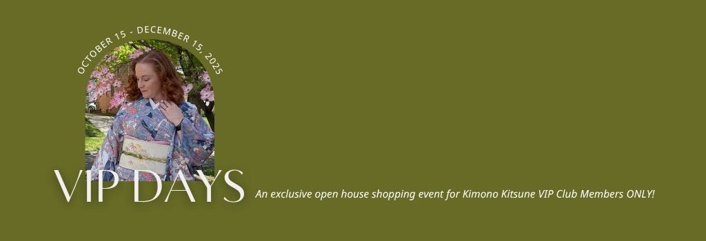 Wednesday, October 15th – Monday, December 15th | VIP Days | Toledo, OH | This is our annual open house, where VIPs can enjoy a private, one-hour appointment at Kimono Kitsune HQ, where you’ll have The Kimono Kitsune’s full attention and access to exclusive pieces not found online or at pop-up shops. Special sales offers are available only during VIP Days, including select items 20%-50% off, a pop-up shop discount perk, and a limited-edition VIP collectible gift!