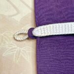 To attach the haori-himo directly, pass the wa through the chi, then bring the opposite end of the cord through the wa and pull gently. This creates a lark’s head hitch — a secure but removable connection.