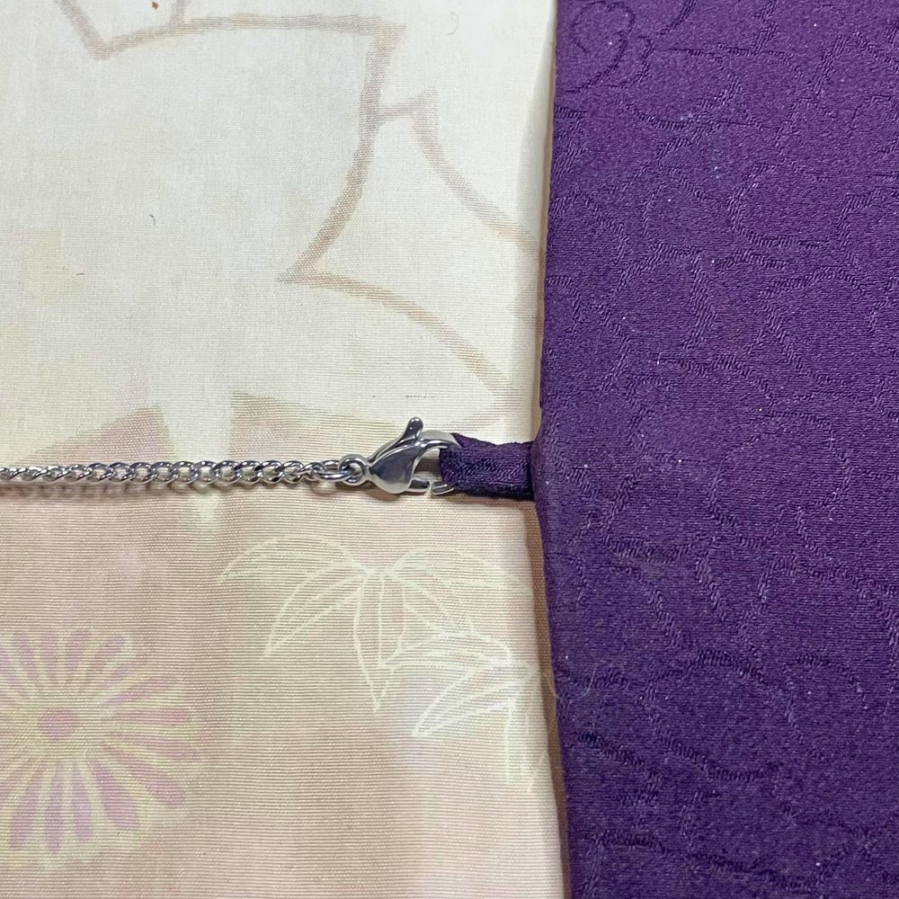 Use the attached S-hooks or lobster claw clasps to secure each side of the haori-himo to the chi inside the haori collar. Unlike kumihimo styles, no tying is required.